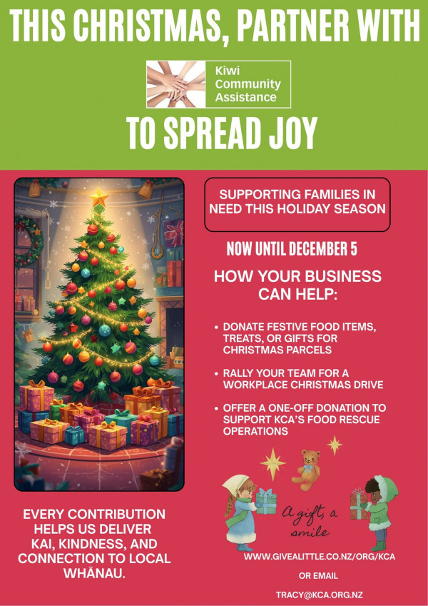 If you'd like to get involved, please email tracy@kca.org.nz to register. We’ll provide posters and a list of suggested gift items to make it easy for you to participate.